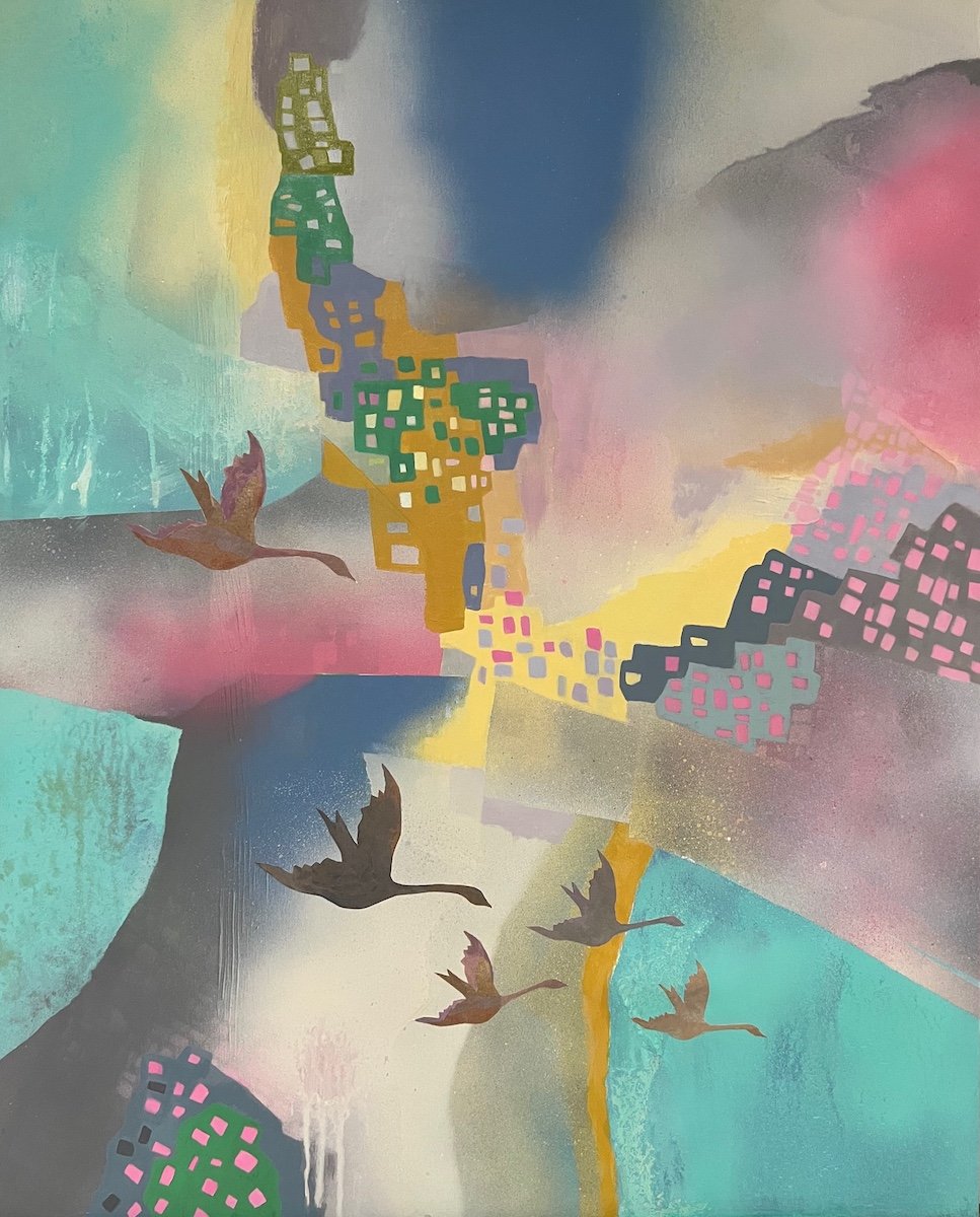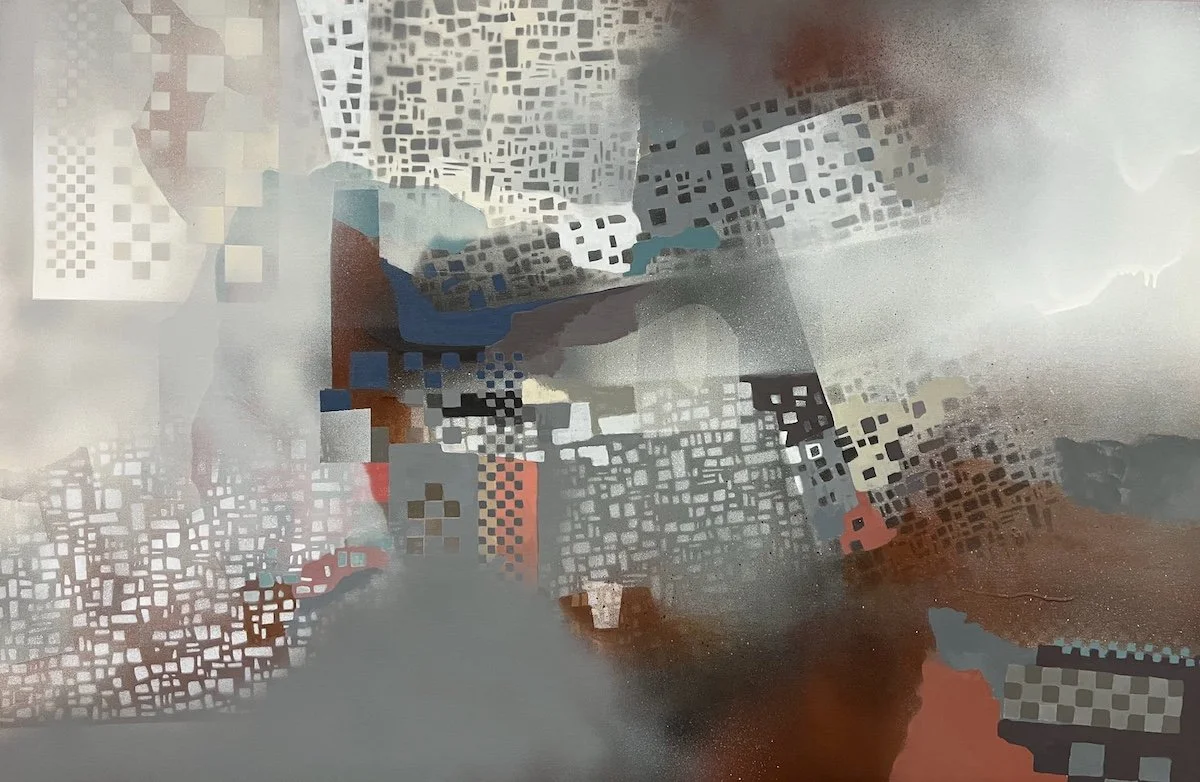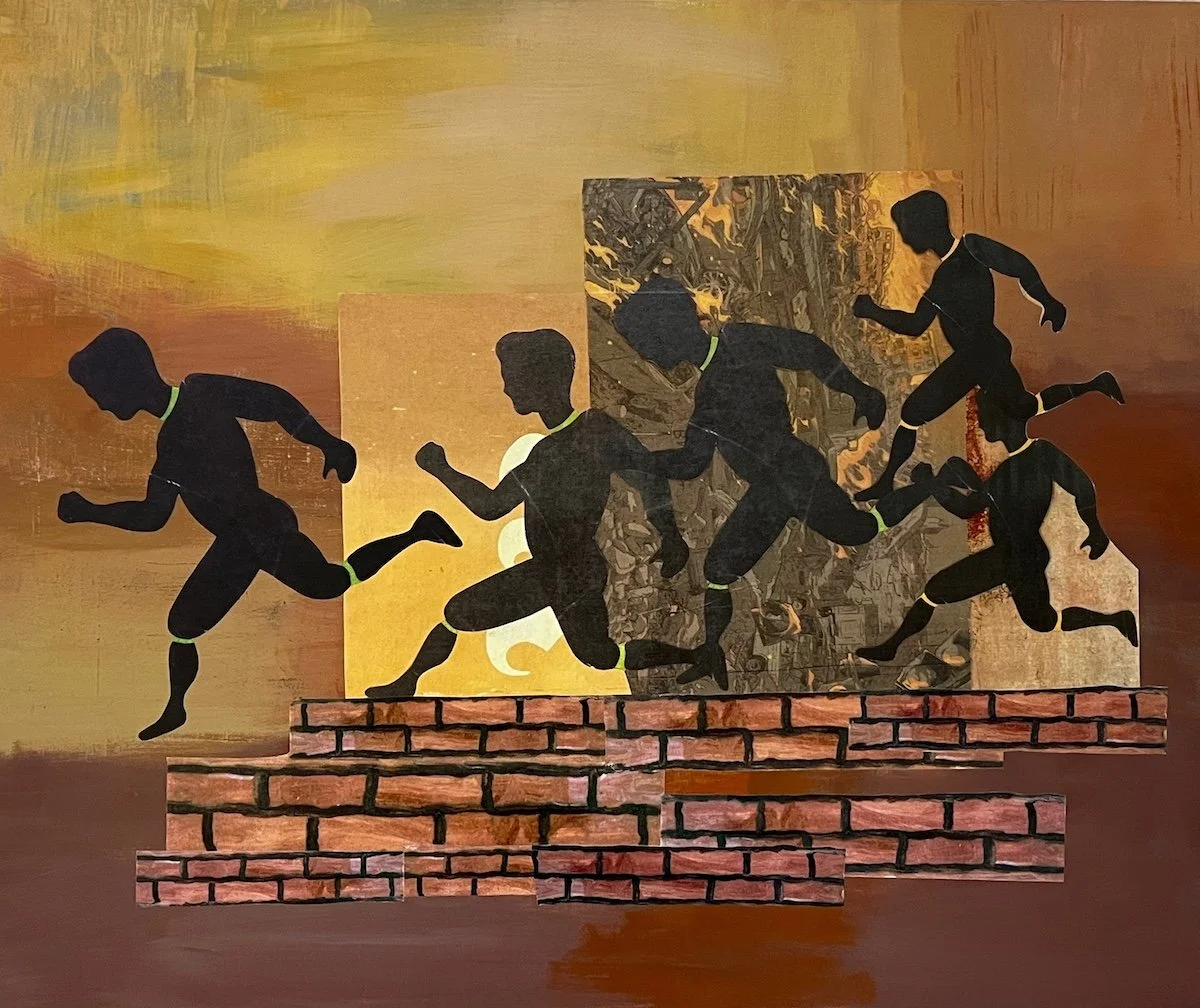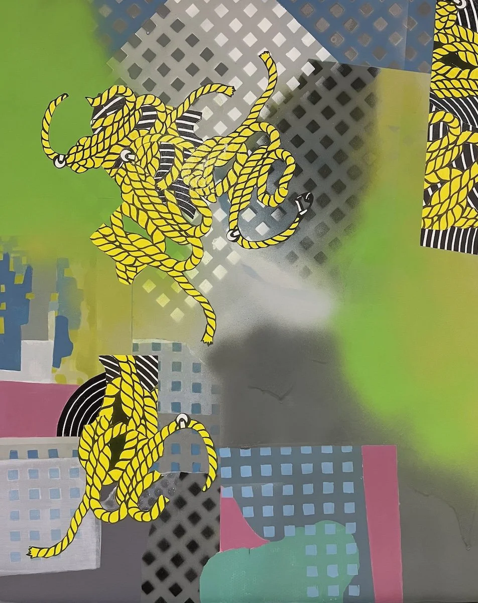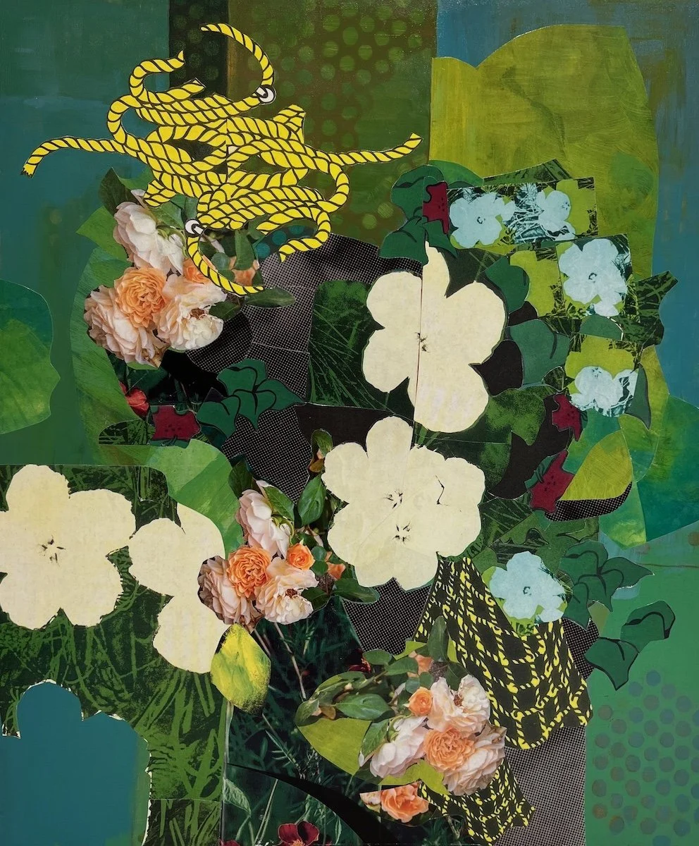 First Flowers, 36”x 36” acrylic and collage on canvas Mid Summer, 24” x 20” acrylic and collage on wood panel All the Mountains I have Ever Seen, 24” x 48” acrylic and collage on wood panel Revolution, 20” x 16” Acrylic and Collage on Wood Panel Flower Show, 24” x 20” acrylic and collage on wood panel September, 24” x 20” acrylic and collage on wood panel Obsession Strength Freedom, 24” x 20” Acrylic on Wood Panel Civitas, 24” x 48” acrylic on wood panel In the Age of Air and Fire, 30” x 24” Acrylic and collage on Wood Panel Smoke No Fire, 24” x 36” Acrylic on Wood Panel Catching Lies, 30” x 24” acrylic and collage on wood panel Dissappeared, 16” x 12” collage Flying is Flying, 24” x 48” acrylic on wood panel Good News Travels, 24” x 20” Acrylic on Wood Panel Rodeo, 16” x 12” collage Coming Apart, 16” x 12” collage On your Own, 16” x 12” collage All Kinds of Weather, 16” x 12” collage Gulfstream, 30” x 24” acrylic and collage on wood panel Melting Fast, 16” x 12” collage Rain Hail Fire, 16” x 12” collage Threshold, 16” x 12” collage Neighborhood, 18” x 24” acrylic on wood panel Nosebag Lunch, 16” x 12” collage Tangled, 24” x 20” acrylic and collage on wood panel Night Time, 16” x 12” collage Careless People, 20” x 24” acrylic and collage on wood panel Fight Night, 20” x 20” oil on wood panel Be Safe, 20” x 20” oil on wood panel Bad Bunnies, 20” x 16” oil on wood panel Pet Me, 18” x 18” oil on wood panel Help Me, 20” x 20” oil on wood panel The Fall, 20”x 16” oil on wood panel Victory Candy, 20” x 16” oil on wood panel Hiding, 18” x 18” oil on wood panel Wired, 20” x 16” oil on wood panel Group Meditation, 24” x 36” oil on wood panel Good Catch, 16” x 12” collage